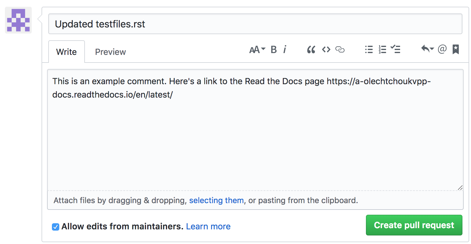 Once you’ve pushed your changes to your remote branch, go to your remote branch on Github (https://github.com/YOURUSERNAME/vpp-docs), and click on “New pull request”.