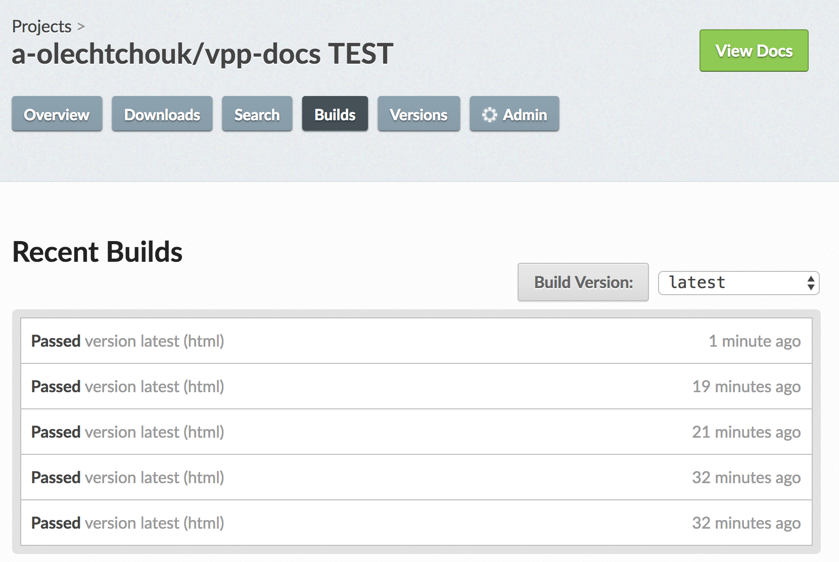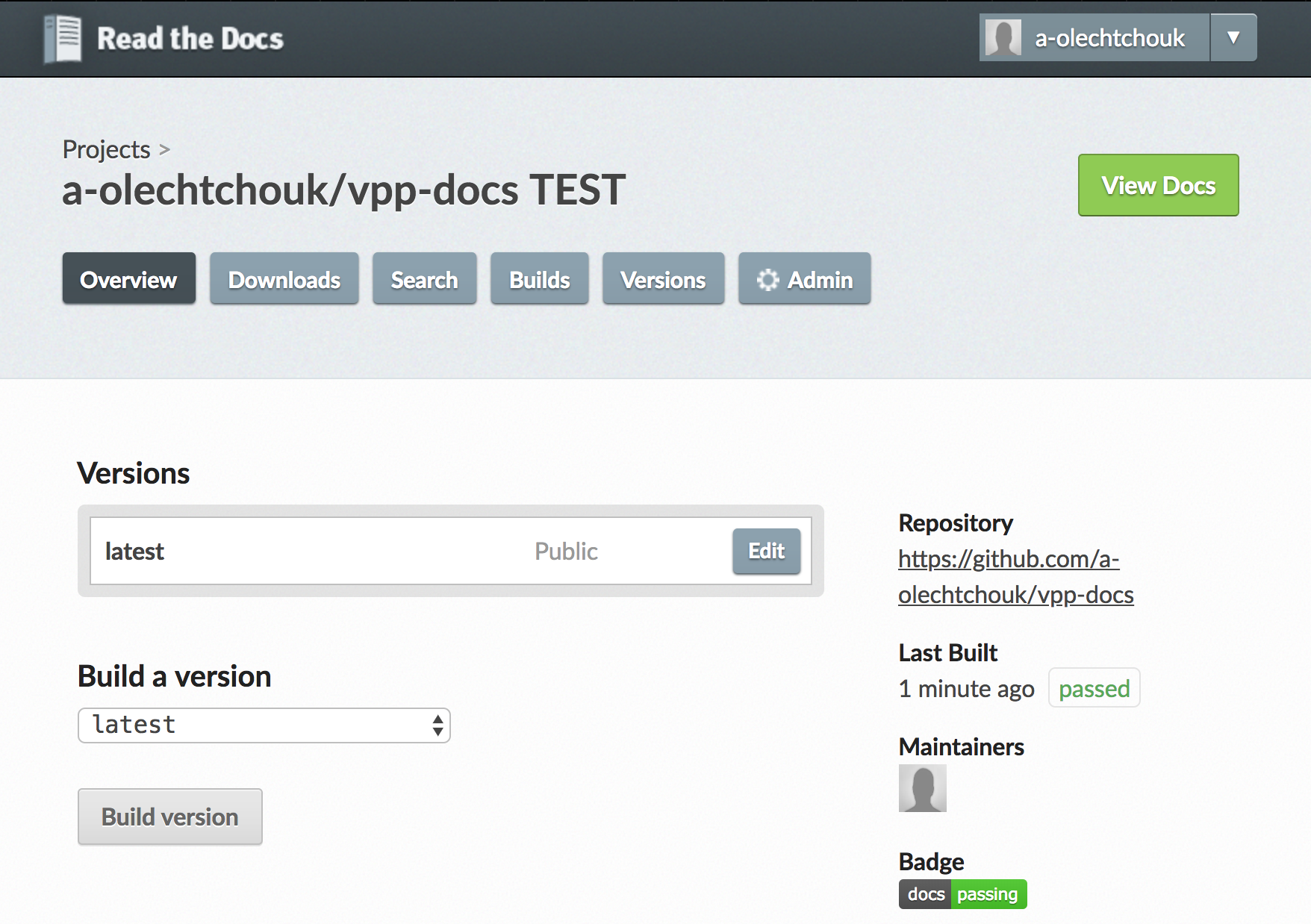 Now on your builds page from the previous image, you can click “View Docs” at the top-right, which will take you a readthedocs.io page of your generated build!