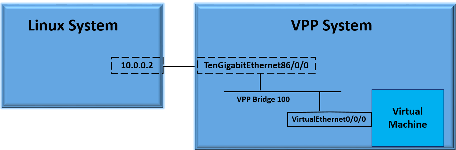 In this case we will use 2 systems. One system we will be running standard linux, the other will be running FD.io VPP.